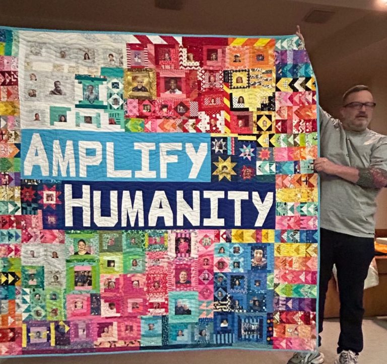 The Amplify Humanity Quilt is a visually stunning and emotionally resonant tapestry created through a unique collaboration between Pfizer and leading oncology patient advocacy groups. Designed & created by Joseph, an oncology nurse and mixed-media artist, the quilt features portraits of advocates, caregivers, and patients - each block representing a story of resilience and purpose. As it travels across major oncology events, the quilt serves as a tangible symbol of partnership, amplifying the voices of those who champion breakthroughs in cancer care and reminding us that humanity is at the heart of scientific progress.